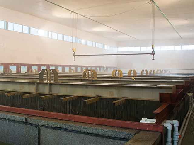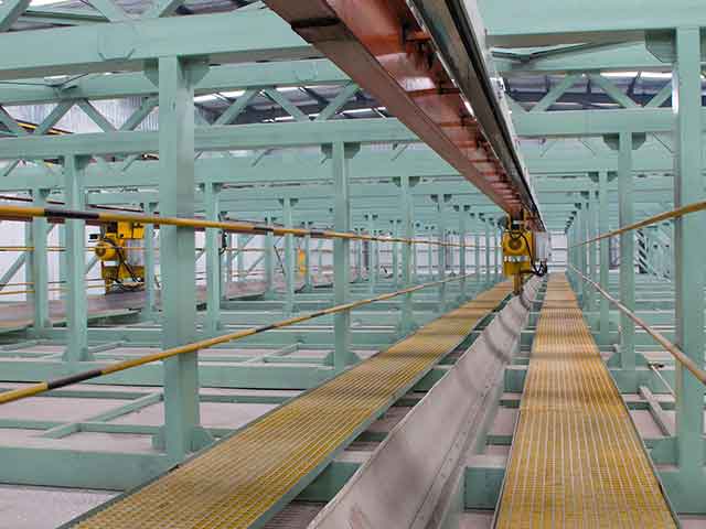 實(shí)例:塔式生產(chǎn)線:鋅鍋13.5×2.8×3.5(m),8個(gè)酸性罐,2個(gè)洗滌槽,1個(gè)輔助罐,高速天然氣脈沖加熱(6個(gè)燃燒器),年生產(chǎn)能力120000噸。